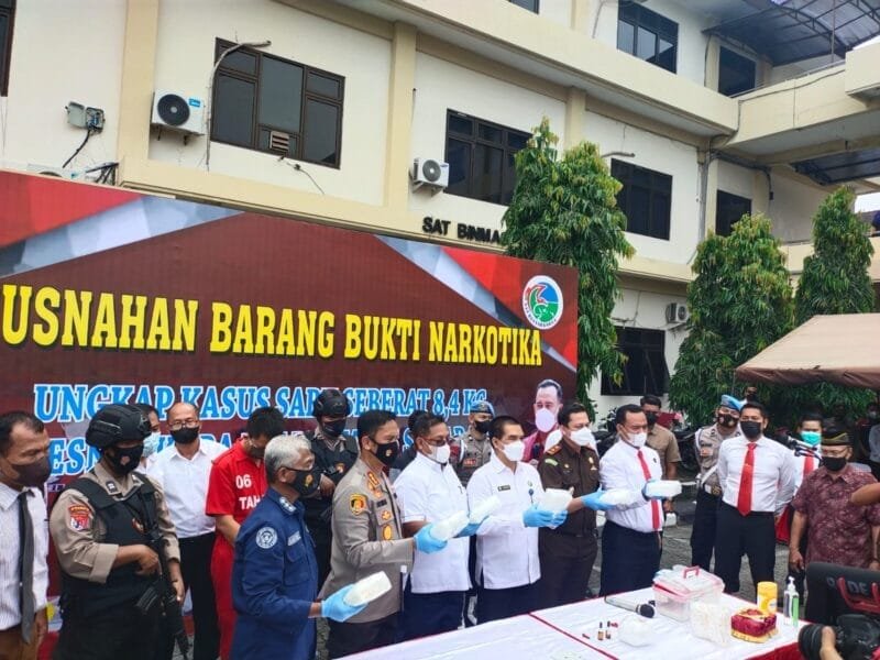 “Pemusnahan ini berdasarkan surat ketetapan status barang bukti sitaan narkotika Cabang Kejaksaan Negeri Kota Semarang Nomor : B-490/M.3.10.7/Enz.1/12/2021 tanggal 16 Desember 2021,” kata Kapolrestabes.