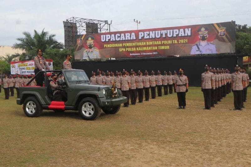 Balikpapan – Kapolda Kaltim Irjen Pol. Drs. Herry Rudolf Nahak, M.Si., secara resmi menutup Pendidikan Pembentukan Bintara Polri T.A. 2021/2022 bertempat di Lapangan SPN Balikpapan, Rabu (22/12/2021).
