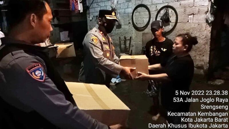 Jakarta Barat,Lensapolri.com – Polsek Kembangan Jakarta Barat Berikan bantuan kepada warganya RT.007/003 Kel Srengseng kembangan Jakarta Barat yang mengalami musibah kebanjiran akibat luapan air kali sanggrahan