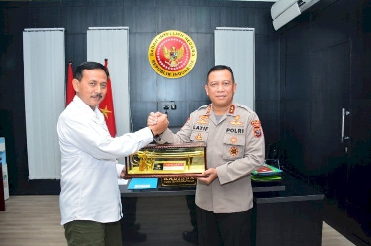 Kupang — Kapolda NTT Irjen Pol Drs. Lotharia Latif, S.H., M.Hum melakukan kunjungan silaturahmi dengan Kabinda NTT Brigjen TNI Adrianus San, S.Sos., M.Tr di Kantor Badan Intelijen Negara Daerah (Binda) NTT, Kota Kupang, Rabu (22/12/2021).