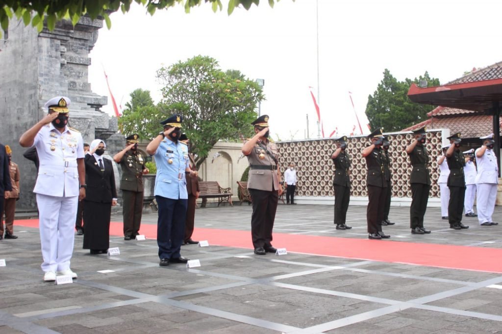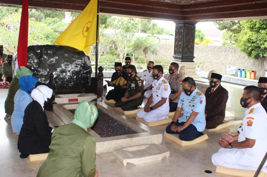 Wakapolda Jawa Timur Brigjen Pol Slamet Hadi Supraptoyo S.H., M.H bersama Pangdam V/Brawijaya Mayjen TNI Suharyanto S.Sos M.M, Pangkoarmada II Laksada TNI Iwan Isnurwanto S.H, Karo SDM Polda Jatim Kompespol Hari Kurniawan S.I.K, Wadan Sat Brimob Polda Jatim AKBP Kurniawan Tandi Ronge S.I.K, melakukan ziarah ke objek wisata religi Makam Bung Karno di Kota Blitar, Senin (4/10/2021).