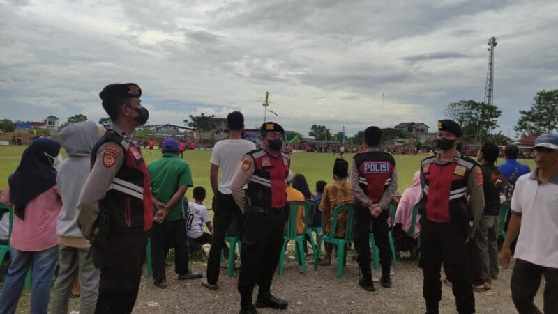 Pringsewu Lensapolri.com Puluhan aparat kepolisian dan TNI amankan open tournamen sepakbola Wonodadi Cup yang sudah memasuki babak 8 besar di lapangan sepak bola Osaka Pekon Wonodadi, Gadingrejo, Pringsewu. Sabtu (3/12/22)