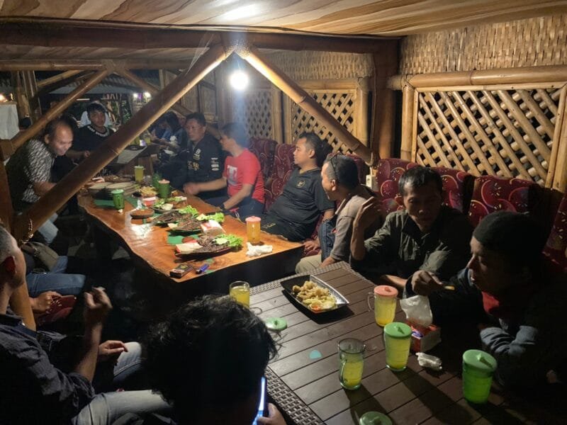 Usai pertandingan mini soccer, kegiatan dilanjutkan dengan santap malam di Wisata Blayu Lesti Lestari, Wajak, Kabupaten Malang.
