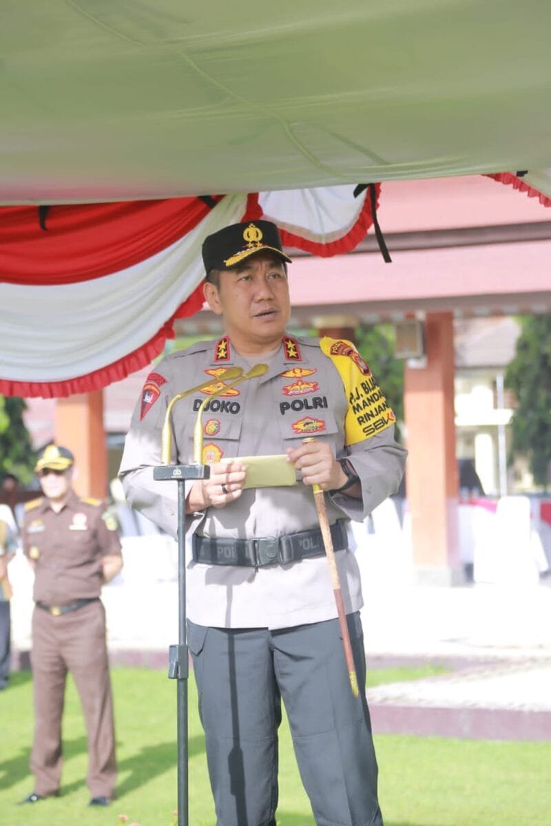 Apel dipimpin Kapolda NTB Irjen Pol Drs. Djoko Poerwanto yang dihadiri Waka Polda NTB, PJU Polda NTB, Anggota Forkopimda Provinsi NTB, Kapolres Jajaran Se Pulau Lombok, serta para Atlit, Pelatih dan Official Kejuaraan Kapolri Cup I dan Porprov NTB XI 2023.