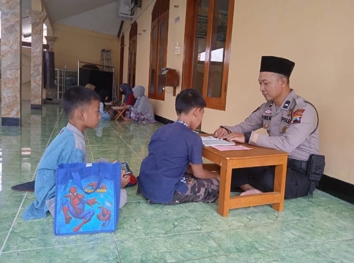 POLRES SRAGEN – Beginilah kegiatan sehari-hari Aipda Furi Mulcahyadi dimasjid Syuhada, mulai dari mengajar membaca serta menulis juga melafalkan Al Quran dilakukan tanpa berharap imbalan kepada santri dan satriwati.