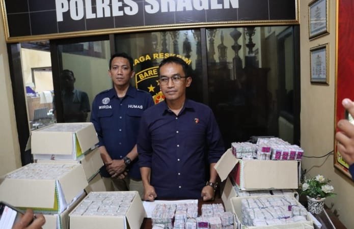 Dalam keterangannya mewakili Kapolres Sragen AKBP Piter Yanottama, Kasat Reskrim menjelaskan telah menangkap dan mengamankan ratusan ribu butir petasan siap edar.