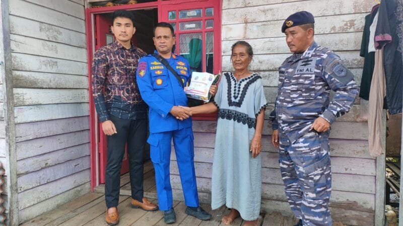 Tana Paser – Sat Polairud Polres Paser bersama Pos Pangkalan TNI Angkatan Laut Pondong salurkan puluhan paket Bantuan Sosial (Bansos) sembako kepada warga yang kurang mampu, Jumat (31/3/23).