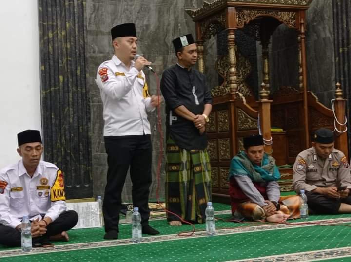Andi,S.Kom.,S.H.,M.M., mewakili Poldasu menyampaikan pesan-pesan kamtibmas kepada para jemaah yang hadir di Masjid Al Malik.