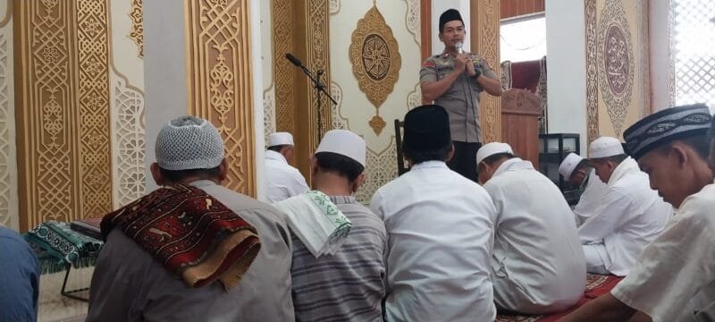 Dalam kesempatan tersebut usai shalat Jum’at Kapolsek Sandubaya menyampaikan beberapa himbauan Kamtibmas serta pesan-pesan kepada masyarakat bahwa ketertiban serta keamanan dalam sebuah lingkungan masyarakat menjadi tanggung jawab kita bersama.