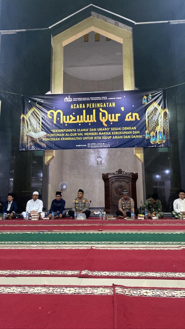 LOMBOK TIMUR – Kapolres Lombok Timur AKBP Hery Indra Cahyono S.H, S.I.K, M.H hadiri Nuzulul Qur’an di Masjid Jamiq Nurul Yaqin Desa Rempung.