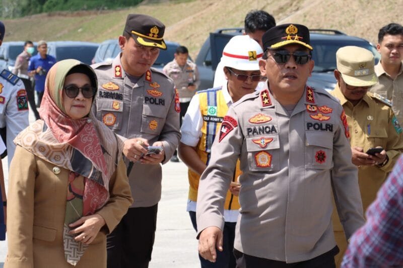 SIMALUNGUN – Kapolres Simalungun AKBP Ronald F.C Sipayung, S.H., S.I.K., M.H., mendampingi kunjungan kerja Kapolda Sumut, Irjen Pol RZ Panca Putra Simanjuntak, bersama sejumlah PJU Polda Sumut mengecek kesiapan Jalur Tol Sinaksak-Dolok Marawan, Kabupaten Simalungun, Senin (10/4).