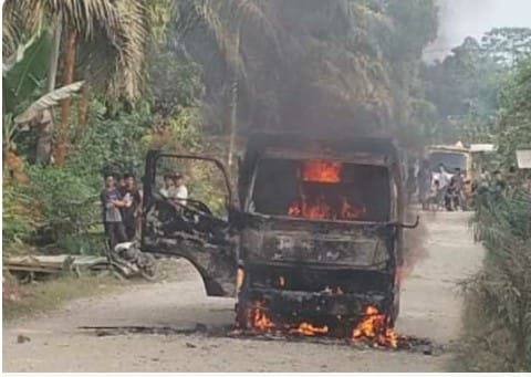 Aceh Tamiang – Warga Kampung Tenggulun, Kecamatan Tenggulun, kabupaten Aceh Tamiang membakar satu unit mobil dump truk BK 8471 CI, Sabtu, 15 April 2023.