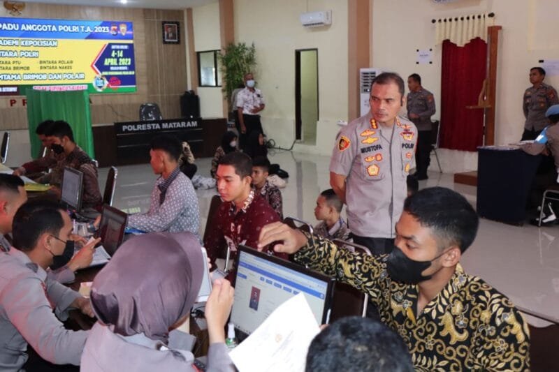 ” Untuk sementara dari hasil pengecekan semuanya sesuai dengan harapan, dan bisa dipastikan penerimaan dan pendaftaran verifikasi calon anggota Polri Tahun 2023 sangat baik. Diharapkan juga kepada masyarakat NTB dan lebih khusus masyarakat Kota Mataram bisa mengajak putra-putrinya mengabdi menjadi anggota Polri,”tutupnya