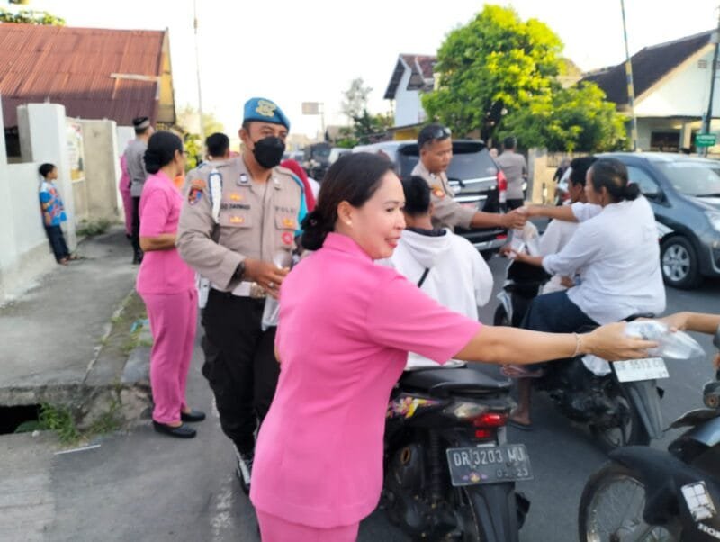 Mataram – Guna rasa kepedulian kepada masyarakat di bulan suci Ramadan 1444 H / 2023 M, Polsek Selaparang bersama Pengurus Ranting Bhayangkari Selaparang melaksanakan kegiatan pembagian Takjil kepada masyarakat pengguna jalan raya yang melintas di Jalan Bung Hatta, Depan Mako Polsek Selaparang. Minggu, (16/04/2023)