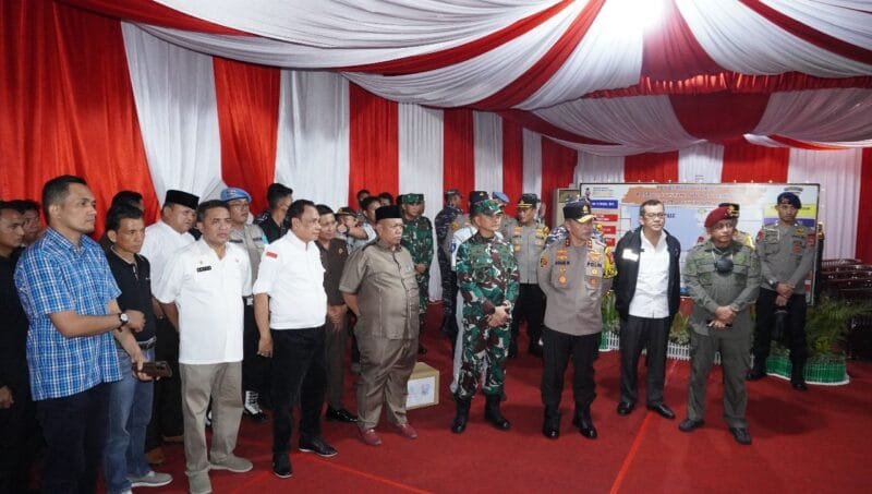 Pada saat melakukan pengecekan Pos Terpadu di Lapangan Vatulemo Palu, rombongan Forkopimda mendapatkan laporan perkembangan situasi dari Kepala Posko (Kaposko) Operasi Ketupat Tinombala 2023 Kompol Suriadi, SH, MM.