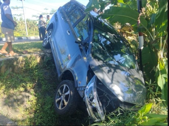 Setibanya di TKP kendaraan Inova menyenggol pengendara sepeda gayung sehingga terpental, sedangkan pengemudi Mobil Toyota kijang Inova membanting setir dan menabrak pohon, kemudian kendaraan terjatuh ke saluran irigasi yang berada disebelah kiri Jalan.