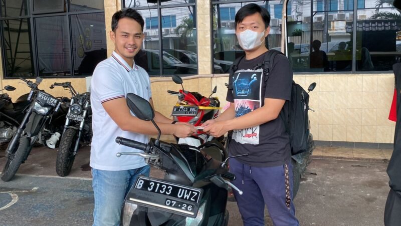 Jakarta Barat, Jacky Chan (31) warga jl utama rt 01/01 seibako riau tak menyangka mendengar kabar baik motor kesayangan yang hilang dicuri oleh orang yang tidak dikenal berhasil ditemukan oleh polsek Metro taman sari