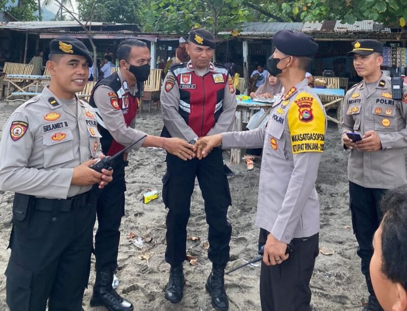 Mataram NTB – Direktur Samapta Polda NTB Kombes Pol Frido Situmorang SH., SIK selaku Wakasatgas dalam OPS Ketupat Rinjani 2023 melakukan monitoring Personel Pengamanan kegiatan Tradisi Lebaran Tupat di dua lokasi objek wisata Pantai Duduk dan Pantai Makam Batu Bolong, Kabupaten Lombok Barat, (29/04/2023).