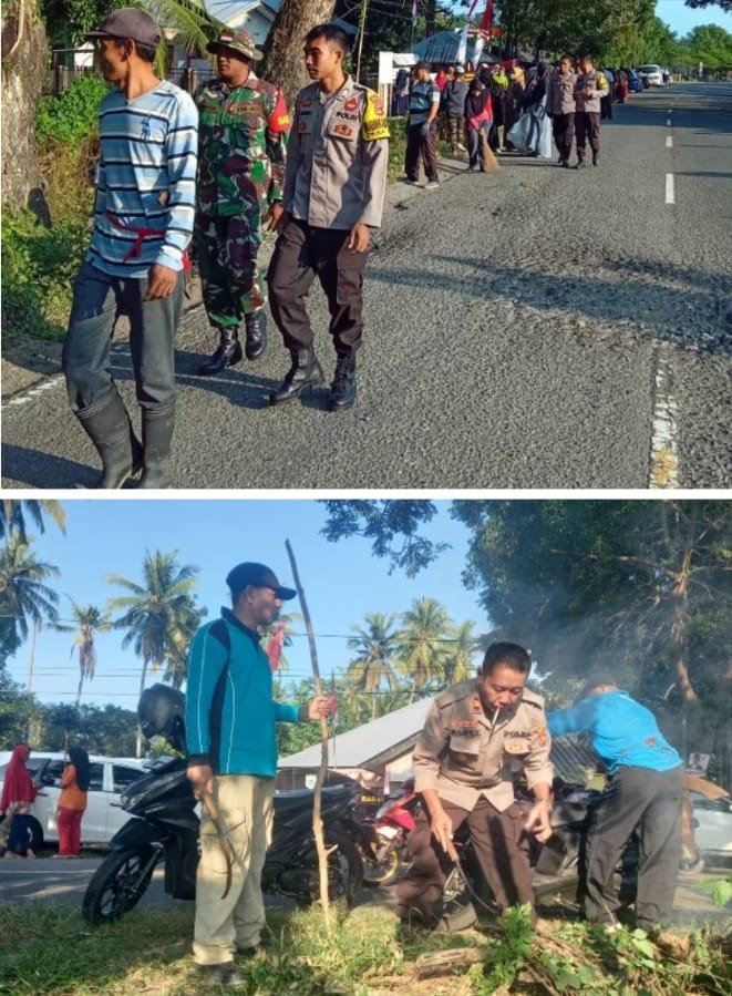 “Bhabinkamtibmas Dasan Anyar bersama dengan Bhabinsa melaksanakan kegiatan gotong royong bersama Camat Jereweh, Kapolsek Jereweh beserta anggota, Danramil Jereweh beserta anggota, Pemdes dasan anyar, Kades Belo, AGR dan masyarakat desa dasan anyar di sepanjang jalan lintas Desa dasan anyar,” tuturnya.