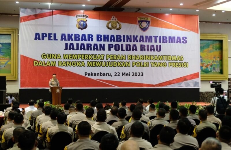 Polda Riau gelar apel akbar Bhabinkamtibmas di Ballroom Hotel Labersa Pekanbaru, Senin (22/05/2023) pagi, sekitar pukul 09.30 Wib. Acara ini dipimpin dan dibuka langsung oleh Kapolda Riau, Irjen Pol Mohammad Iqbal.