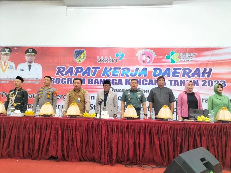Kegiatan Rapat Kerja Daerah Program Bangga Kencana Tahun 2023 Kabupaten Donggala, Mengangkat Tema : Peningkatan Sinegritas dan Kolaborasi Pencapaian Program Bangga Kencana dan percepatan penurunan Stunting di Kabupaten Donggala di buka secara langsung oleh Bupati Donggala Kanjeng Raden Aryo Hadiningrat, DR.Drs. Kasman Lassa, SH. MH Di Gedung Almusidin Al- Akhaerat Palu, Sabtu 20 Mei 2023 dan di hadiri dari unsur Forkopimda, Dandim 1036 / palu Letkol Endang Sumardi ( menggantikan Kolonel Ari Suseno, Kapolres Donggala di wakili Kabag OPS Polres Donggala AKP Syahrul, Anggota DPRD Donggala dari Fraksi PDIP Mahmud, Asisten 1 Bidang Pemerintahan dan Kesra Sekda Kabupaten Donggala Moh. Yusuf,SE.M.Si, Sekretaris DPRD Donggala DR. H. Muhammad Ali, S.Pd. MM , Ketua Karang Taruna Donggala BUMN, dan swasta TPPS, satgas Stunting dan OPD yang membidangi Pengendalian Penduduk dan Keluarga Berencana 16 kecamatan sekabupaten Donggala, Dan Turut Hadir Kepala Wilayah BKKBN Sulteng Tenny C. Soriton, S.Sos. MM. Dalam sambutan Bupati Donggala DR. Drs. Kasman Lassa, SH. MH di hadapan para peserta Rapat Daerah mengatakan, Yang berkaitan dengan Gizi ada tiga hal yang pertama konsep harus melakukan penurunan segera, bayangkan 29, 5 persen Tahun 2022 sekarang bukan menurun malah naik 2 persen sekarang menjadi 32 persen, kapan kita bisa melakukan gerakan, gerakan ini didasarkan dengan kesepahaman gerakan di dasarkan kesepakatan bersama. Desakan ini di didasarkan dengan Keinginan ini untuk tidak bisa ketergantungan, tetapi punya konsep sendiri, metode sendiri, kita punya gaya sendiri, kita punya naluri sendiri untuk mau kemana urusan yang berkaitan dengan Stunting ini adalah ada hubungan dengan penurunan penurunan angka kelahiran yang namanya menurunkan angka kematian Ibu dan anak.