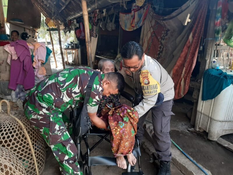Lombok Utara, Polda NTB – Bhabinkamtibmas Desa Gumantar Bripka Didik Hendrawan.SH bersama anggota Babinsa Desa Gumantar Serda Hasan Basri melaksanakan kegiatan pengamanan dan monitoring penyaluran bantuan kursi roda dari Endri foundation yang di peruntukan bagi warga masyakarat yang membutuhkannya dilaksanakan di Dusun Air Bari Desa Gumantar Kecamatan Kayangan Lombok Utara. Kamis 25/05/2023