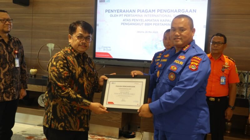 Mataram- PT. Pertamina International Shipping (PIS), Jumat (26/5/2023), memberikan penghargaan kepada Direktorat Kepolisian Perairan dan Udara (Dit Polairud) Polda NTB. Penghargaan untuk Dit Polairud Polda NTB itu, diberikan di Executive Lounge Graha Pertamina Lantai 21 Gambir, Jakarta.