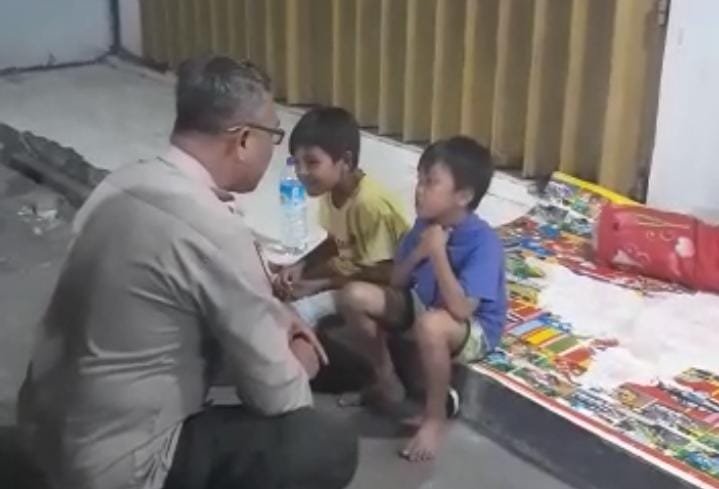 Mataram – Bhabinkamtibmas Kelurahan Monjok Polsek Selaparang Polresta Mataram Polda NTB Aiptu Gede Putu Buciana menunjukkan aksi pedulinya kepada anak-anak yang terlihat bermain dan tidur di pinggiran pertokoan sampai larut malam di sepanjang pertokoan Kelurahan Monjok, Kecamatan Selaparang, Kota Mataram. Minggu, (04/06/2023)