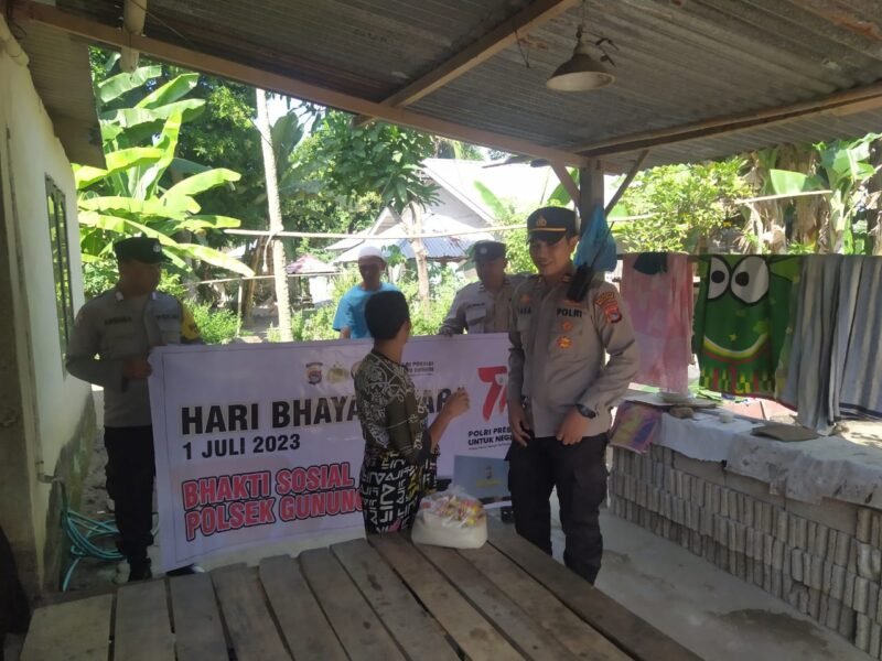 Lombok Barat – Menyambut Hari Bhayangkara Ke 77 Tahun 2023, Polsek Gunungsari Polresta Mataram Polda NTB memberikan bantuan sosial kepada warga masyarakat yang kurang mampu di Dusun Medas Desa Gunungsari Kecamatan Gunungsari, Kabupaten Lombok Barat. Jumat, (09/06/2023)