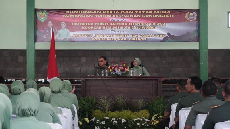 Cirebon- Selasa 20 Juni 2023,- Saat Kunjungan kerja ke Kodim 0620/Kab Cirebon, Danrem 063/SGJ Kolonel Inf Andi Asmara Dewa SH M.Han bersama Ibu didampingi Dandim 0620/Kab Cirebon Letkol Inf Afriandy Bayu Laksono S.Sos., M.I.Pol dan Ibu memberikan pengarahan kepada Babinsa dan meninjau Stand UMKM Kodim 0620/Kab Cirebon, Selasa (20/6/2023).