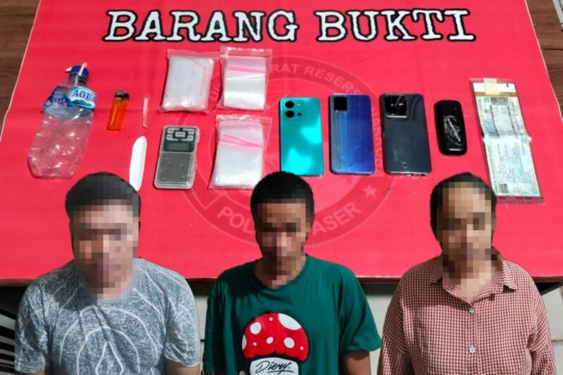 Paser – Sat Resnarkoba Polres Paser berhasil meringkus 3 warga Desa Batu Kajang berinisial ESW (33), RL (24) dan S (24) atas penyalahgunaan narkotika pada, Sabtu (8/7).