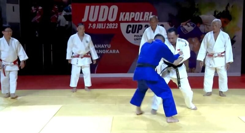 Jakarta- Kepolisian Negara Republik Indonesia (Polri) menggelar kejuaraan Judo Kapolri Cup dalam rangka memperingati Hari Bhayangkara ke-77 di Padepokan Pencak Silat Taman Mini Indonesia Indah (TMII), Jakarta Timur, Minggu 9 Juli 2023.