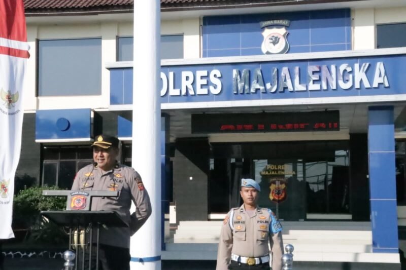 Majalengka- Mewakili Kapolres Majalengka AKBP Indra Novianto,S.I.K.,M.Si, Kabag Ren Polres Majalengka Kompol Cucu Supiar, memimpin apel pagi di Lapangan Apel Polres Majalengka hari ini Senin (17/7/2023).