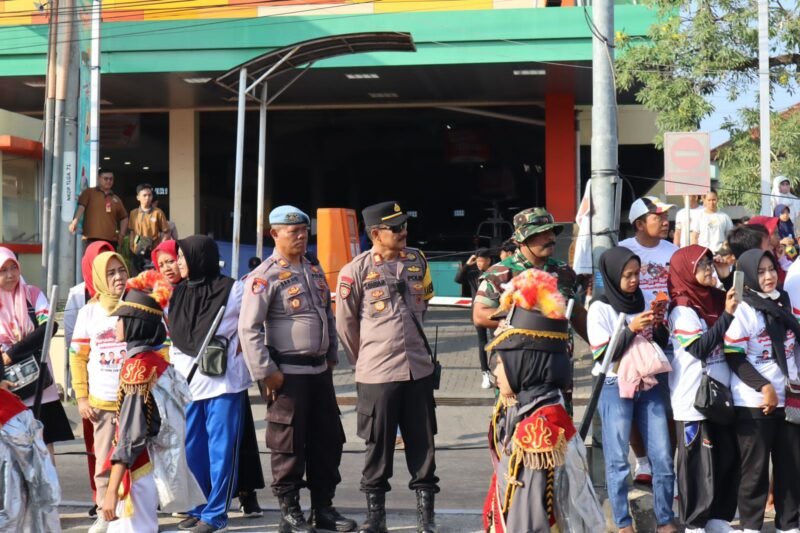 Majalengka- Personil Polres Majalengka bersama gabungan Polsek Jajaran Polres Majalengka melakukan Pengamanan Kegiatan Kirab Budaya dan Jalan Sehat yang bertempat di Lapangan GGM Kabupaten Majalengka, Minggu (23/7/2023).