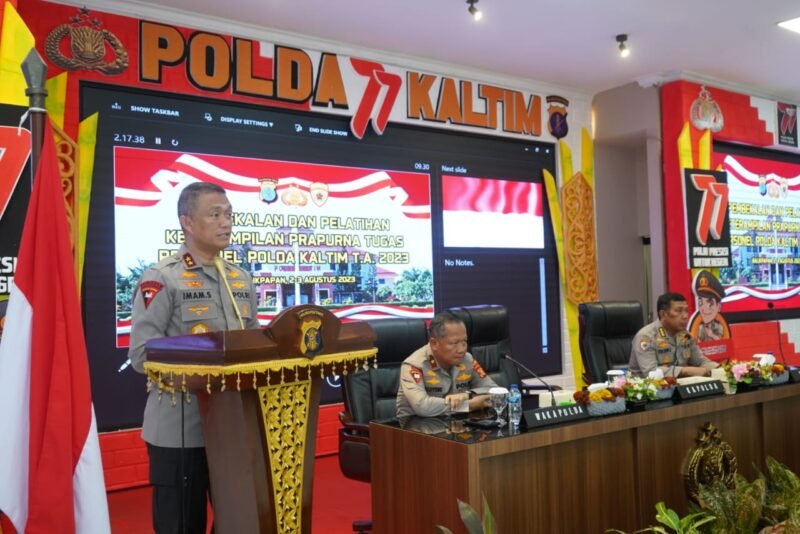 Balikpapan – Kapolda Kaltim Irjen Pol Drs. Imam Sugianto, M.Si., didampingi Wakapolda Kaltim Brigjen Pol Drs. Mujiyono, S.H., M.Hum, dan Irwasda Polda Kaltim membuka Kegiatan Pembekalan dan Pelatihan Keterampilan bagi anggota dan PNS Polri Polda Kaltim yang akan memasuki masa pensiun yang akan datang, bertempat di Gedung Mahakam Mapolda, Rabu (2/08/2023).