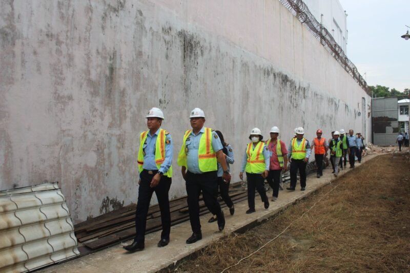 Kepala Lembaga Pemasyarakatan Kelas IIA Binjai, Theo Adrianus, A.Md.IP., S.H., M.H beserta jajaran menerima kunjungan Kepala Kantor Wilayah Kementerian Hukum dan HAM Sumatera Utara, Imam Suyudi dalam rangka melaksanakan monitoring dan evaluasi Pembangunan Blok Hunian Lapas Binjai , Selasa (01/08/2023).