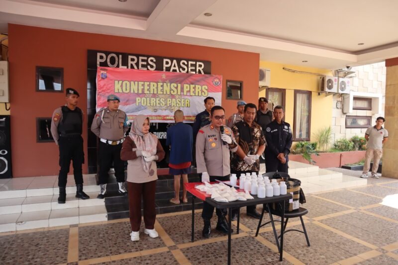 Paser– Pihak Kepolisian Resor Paser menggelar konferensi pers pengungkapan kasus peredaran gelap narkoba obat keras jenis Dobel L pada hari, Jum’at (11/08/2023) siang.