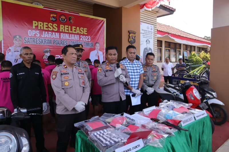 Lombok Timur NTB, Lensapolri.com- Operasi kepolisian kewilayahan “Jaran Rinjani -2023” yang dilaksanakan Polres Lombok Timur, Polda Nusa Tenggara Barat, berhasil menangkap 40 tersangka yang terlibat dalam kasus Pencurian dengan kekerasan, pemberatan dan pencurian bermotor (3C).