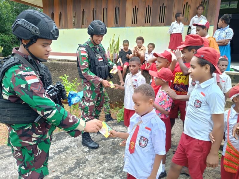 Boven Digoel- Untuk meningkatkan imunitas anak-anak sekolah, agar terhindar dari berbagai penyakit, Satgas Pamtas Statis RI-PNG Yonif Raider Khusus 111/KB aceh tamiang yang bertugas diwilayah jajaran Korem 174/ATW, membagikan vitamin dan suplemen kepada anak-anak di wilayah perbatasan RI-PNG. Jum’at (25/08/2023)