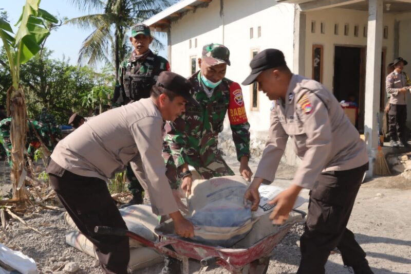 Lombok Tengah NTB- Personil Polres Lombok Tengah bersama Personil Kodim 1620/Lombok Tengah melaksanakan kegiatannya Bhakti Sosial dalam rangka mensukseskan program pemerintah Rumah Sejahtera Terpadu (RST) di Kelurahan Semayan Kecamatan Praya, Selasa 29 agustus 2023.