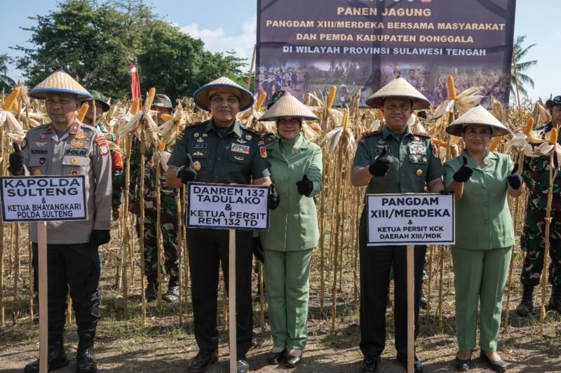 Donggala- Pangdam XIII/Merdeka bersama Bupati Donggala Kasman Lassa dan Sekretaris Daerah Provinsi Sulawesi Tengah Novalina Wiswadewa beserta Danrem 132/Tadulako Brigjen TNI Dody Triwinarto dan Wakapolda Sulteng, Brigjen Suseno melakukan Panen Jagung, di desa Labuan Toposo, Kecamatan Labuan Kabupaten Donggala, Senin (31/8/23).
