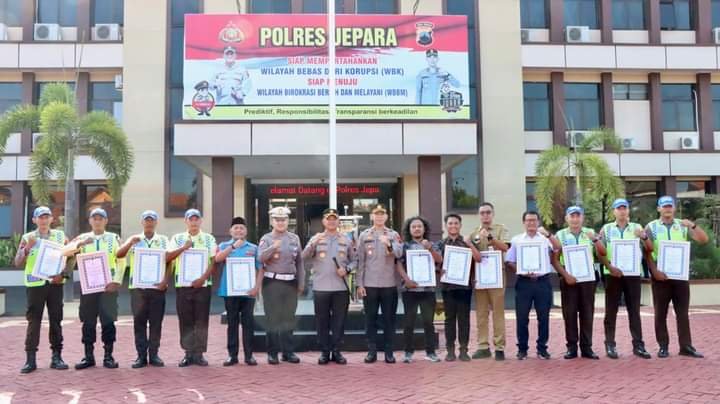 Jepara– Kapolres Jepara AKBP Wahyu Nugroho Setyawan memberikan reward dan penghargaan kepada belasan warga Kabupaten Jepara sebagai Mitra Polantas Polri yang telah berdedikasi dalam membantu tugas Kepolisian.