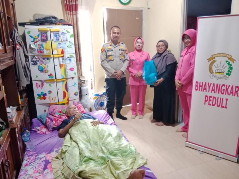 Dipimpin langsung Kapolsek KPC polres Cirebon kota Polda Jabar AKP Muhyidin, SH,MH didampingi Ketua Ranting Bhayangkari KPC Ny.Ida Muhyidin membesuk Purnawirawan Polsek KPC yang mengalami sakit menaun, Sabtu (30/09/2023).