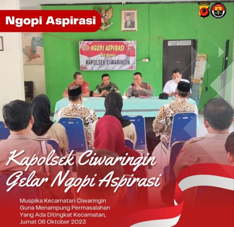 Polresta Cirebon- Personil Polsek Ciwaringin Polresta Cirebon mengadakan pertemuan dengan Muspika Kec. Ciwaringin, melaksanakan Jumat Curhat atau Ngopi Aspirasi di Aula Kecamatan Ciwaringin, Kabupaten Cirebon.