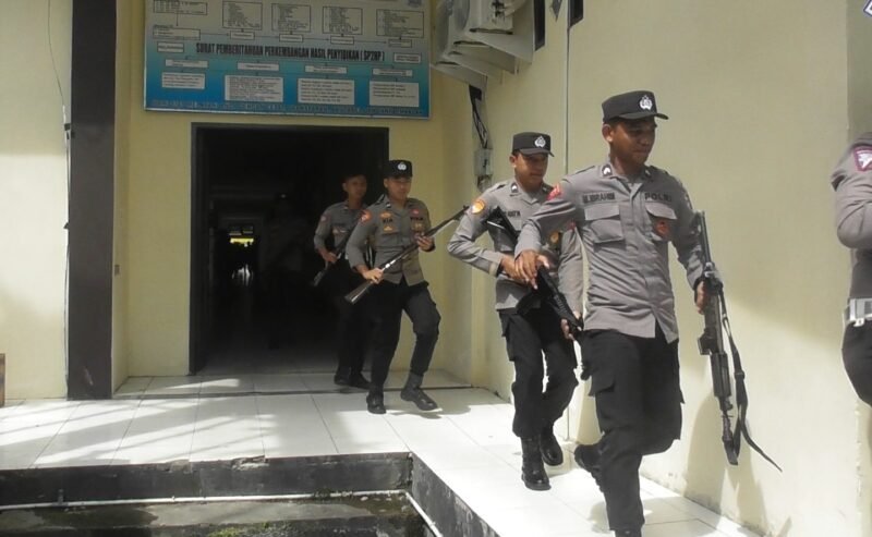 Polres PPU – Polres Penajam Paser Utara (PPU) menggelar Latihan Sistem Pengamanan Markas Komando (Sispam Mako), Selasa (10/10/2023).