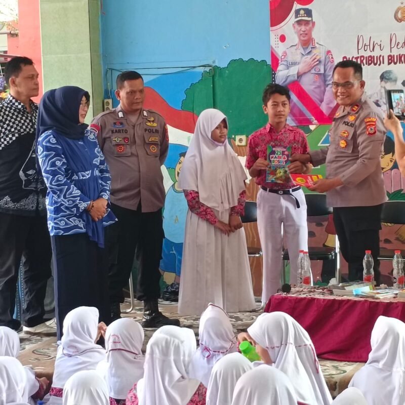 Polres Cirebon Kota- Polsek Kesambi Polres Cirebon Kota menggelar Polri Presisi melalui “Polri Peduli Budaya Literasi” melalui Distribusi Buku Sampai Pelosok Nusantara di SDN Sadagori Kota Cirebon, Kamis (12/10/23).