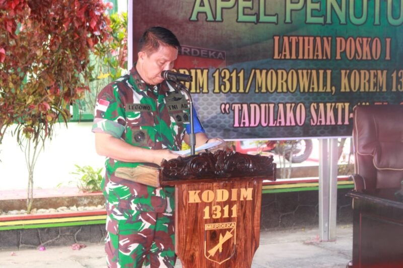 Morowali – Pangdam XIII/Mdk, Mayjen TNI Legowo W.R. Jatmiko S.IP., M.M Memimpin Apel Penutupan Latihan Posko 1 Kodim 1311/Morowali Ta. 2023, bertempat di Makodim 1311/Morowali, Kompleks KTM Desa Bahomohoni Kec. Bungku Tengah, Kab. Morowali, Sabtu (21/10/2023).