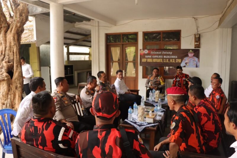Majalengka, Kapolres Majalengka Polda Jabar AKBP Indra Novianto, S.I.K., M.Si., CPHR menjalin silaturahmi kamtibmas dengan ketua dan pengurus MPC (Majelis Pengurus Cabang) Pemuda Pancasila di Rumah Ketua MPC Pemuda Pancasila Kabupaten Majalengka, yang terletak di Jl. KH. Abdul Halim pada Senin (6/11/2023).