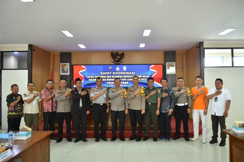 JEPARA – Kepolisian Resor (Polres) Jepara menggelar rapat koordinasi lintas sektoral operasi lilin candi untuk pengamanan Hari Raya Natal 2023 dan Tahun Baru 2024 yang bertempat di Aula Polres Jepara, Kamis (23/11/2023).