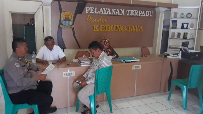 Bhabinkamtibmas Desa Kedung jaya Aiptu Kamaluddin bersilaturahmi dan sambang dialogis dengan perangkat Desa Kedung jaya Kec.Kedawung Wilkum Polres Cirebon Kota.